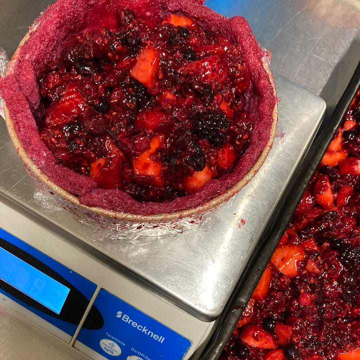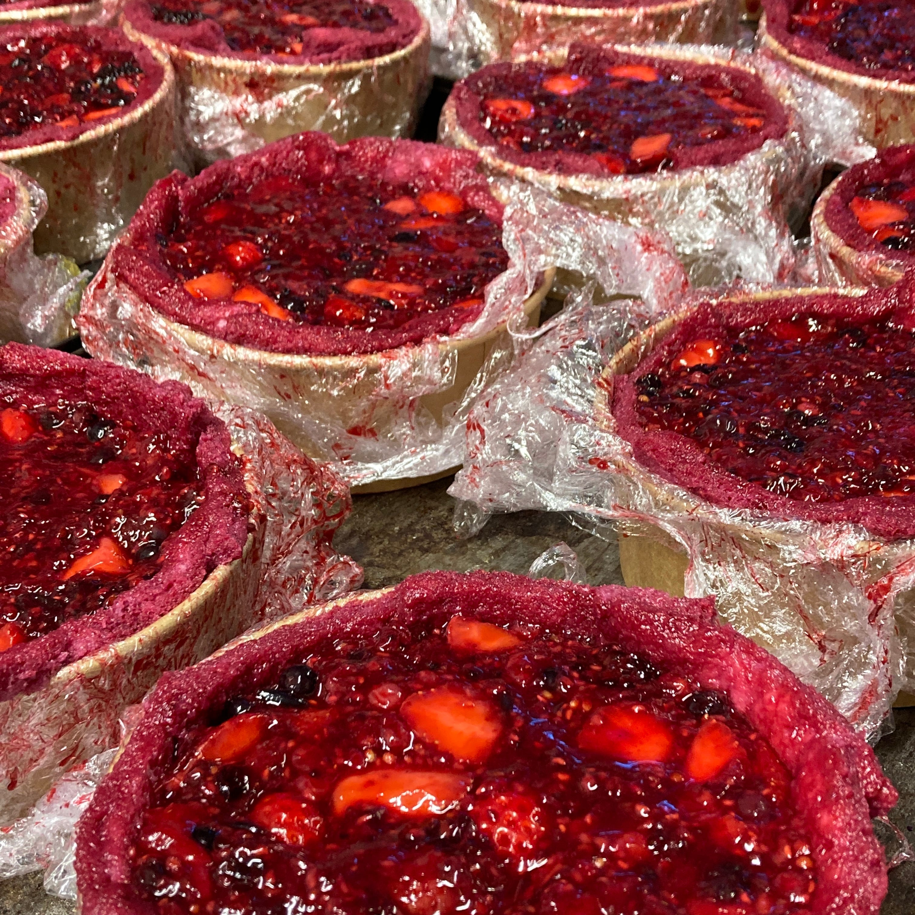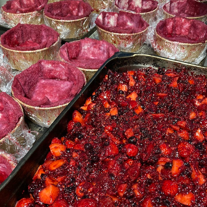 -Estoy pensando en dos lugares al mismo tiempo. Acá, Frome, donde vivo, invierno oscuro -5 grados hoy. Allá, Argentina de donde es la Juli que me hizo la Juli del tiempo actual. Toda tapada con una mantita y siendo las 4 de la tarde con plena oscuridad quiero mandarles una receta que hice en mi verano acá y compartirla con su verano allá porque me acuerdo que me había parecido una idea increíble y me acuerdo que muchas personas me habían pedido la receta, me acuerdo que me había dado fiaquita pasarla porque pensaba: es invierno en Argentina, no es época de frutas rojas.