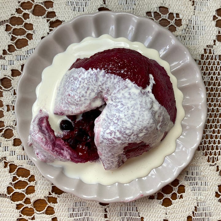 Veo recetas de Summer Berry Pudding desde que era chica y Pilar me traía unas revistas de catálogos de decoración de Laura Ashley llenos de objetos que jamas había visto en mi vida como por ejemplo un mueble con puertas para esconder el televisor gordo de los 90s. Al final del catálogo había recetas para recibir invitados y Quedar Bien. No solo estaba este Pudding sino que muchos más, era como una gran familia de puddings que no entendía bien.